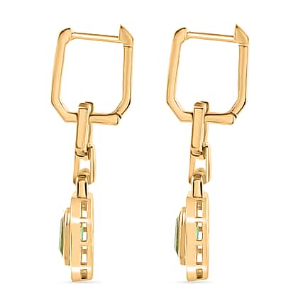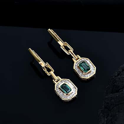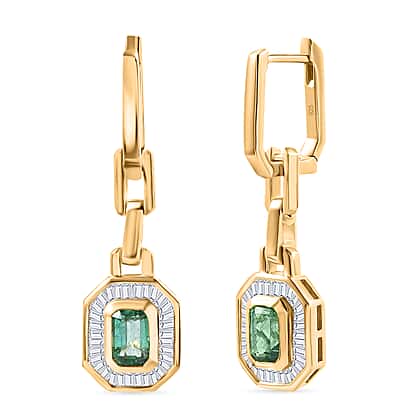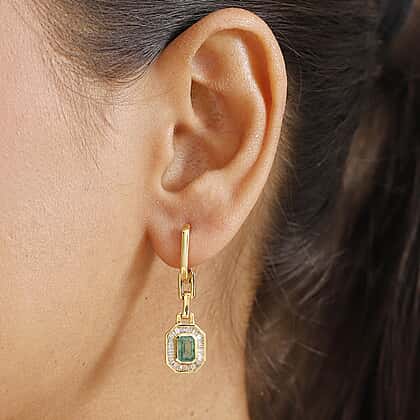 RACHEL GALLEY Premium Emerald & White Diamond Dangling Earring with Hoop in 18K Vermeil Yellow Gold Plated Sterling Silver 1.53 Ct.