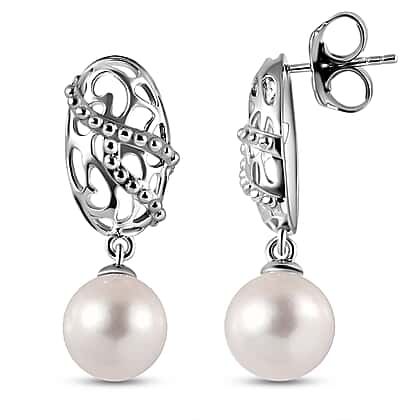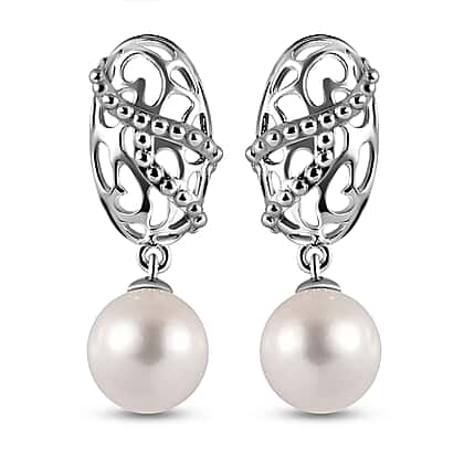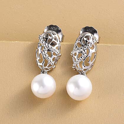 This exquisite drop earring combines the artistry and charm of white Edison pearl. The stunning openwork and captivating oval-shaped frame design create a sense of movement, offering a striking piece of jewellery. Crafted in rhodium overlay on 925 sterling silver, this earring offers durability and lasting shine. Perfect for sensitive skin as its hypoallergenic properties provide comfort to the skin. Finished with a push-back closure that beautifully styles on the ear, offering security and comfort.