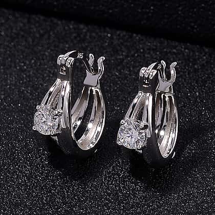 RADIANTA Moissanite - GRA Certified D-VVS1 Moissanite J Hoop Half Hoop Earring With Clasp in Rhodium Overlay Sterling Silver.