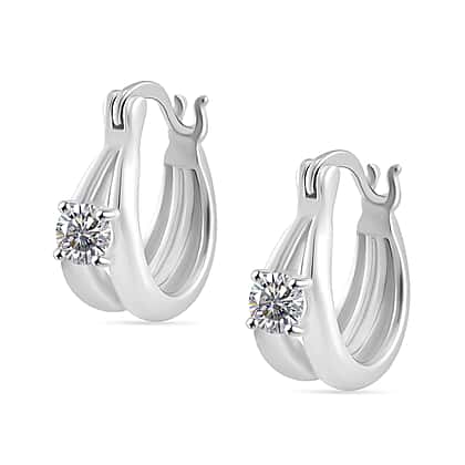 GRA Certified Moissanite Hoop Earrings in Rhodium Overlay Sterling Silver