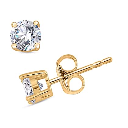 RADIANTA GRA Certified Moissanite D-VVS1 Solitaire Stud Push Post Earring in 18K Vermeil Yellow Gold Plated Sterling Silver 1.00 Ct.
