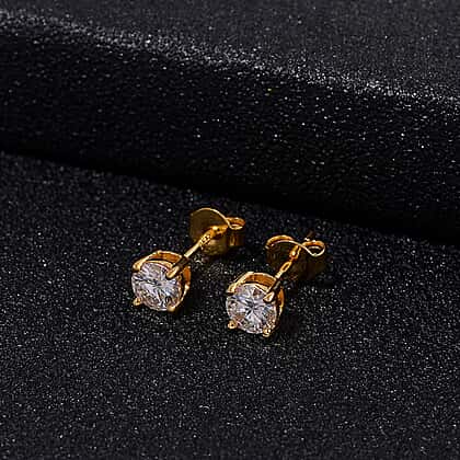 Timeless elegance meets modern brilliance with these moissanite solitaire stud earrings. Showcasing GRA-certified D-VVS1 moissanite rounds, these earrings offer a diamond-like sparkle with exceptional fire and durability. Set in 18K vermeil yellow gold-plated sterling silver, they provide a tarnish-resistant finish that is gentle on sensitive skin. The classic four-prong setting enhances the beauty of the moissanite, making it an ideal choice for daily wear or special occasions. Secured with a push post for a comfortable fit, this pair is a must-have for those who appreciate understated luxury and enduring style.
