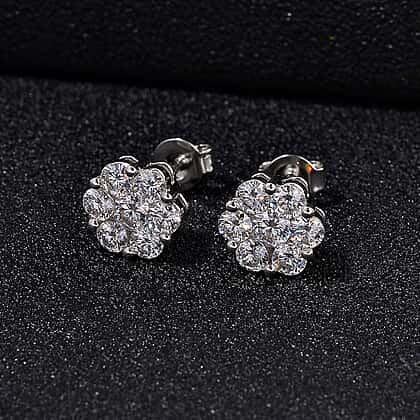 RADIANTA Premium D Colour VVS1 Moissanite - GRA Certified Earrings with Push Back in Rhodium Overlay Sterling Silver 1.60 Ct.