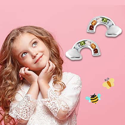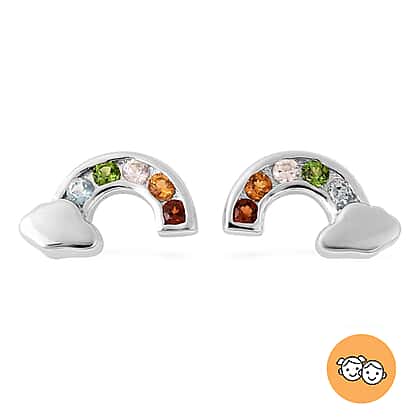Rainbow Earrings for Kids with Multi Gemstone in Sterling Silver