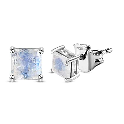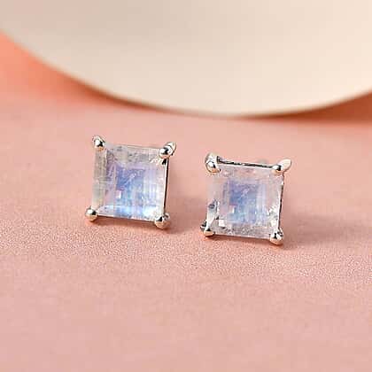 The solitaire theme inspires these rainbow moonstone stud earrings. It is made from 925 sterling silver with a platinum overlay and push-back fastening to hold the piece. These earrings are encrusted with a square shape gemstone secured in a four-prong setting giving rainbow sparkle and shine. You can wear them all day long for a comfortable and stylish look.