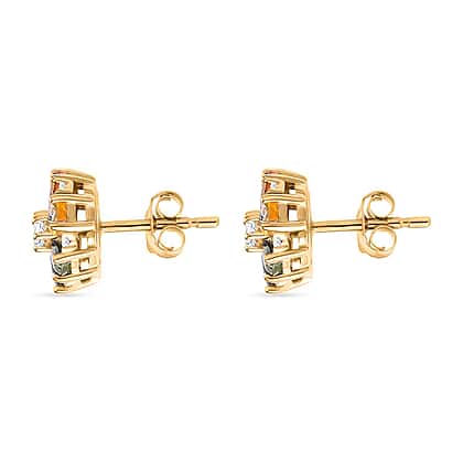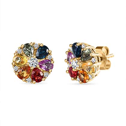 Rainbow Sapphire & White Zircon Cluster Push Back Earrings in 18K Vermeil Yellow Gold Plated Sterling Silver 2.73 Ct.