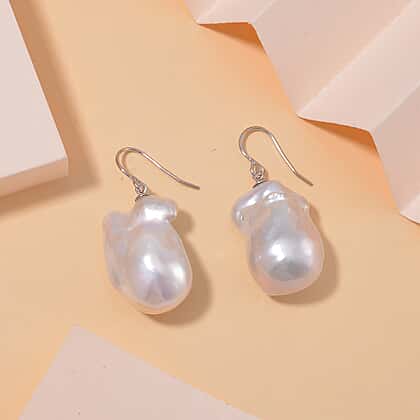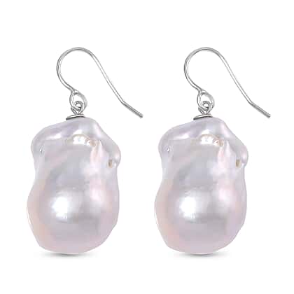 White Baroque Pearl Earrings in Rhodium Overlay Sterling Silver 87.70 ct.