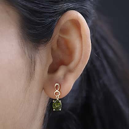 Rare Vesuvianite Dangle Earrings in 18K Yellow Gold Vermeil Plated Sterling Silver 2.60 Ct.