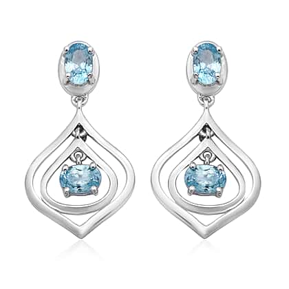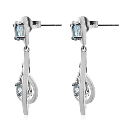 Ratanakiri Blue Zircon Dangle Earrings in Rhodium Overlay Sterling Silver 2.88 Ct
