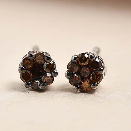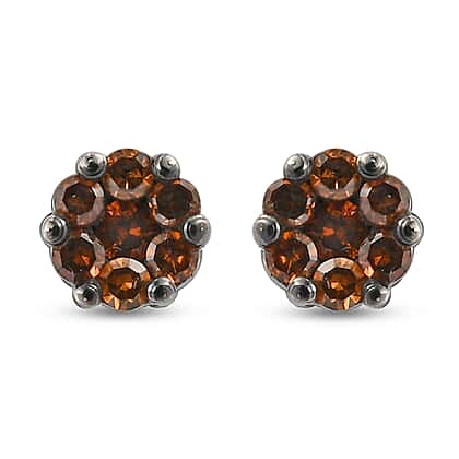 Red Diamond Pressure Set Floral Stud Earrings in in Platinum Plated Sterling Silver