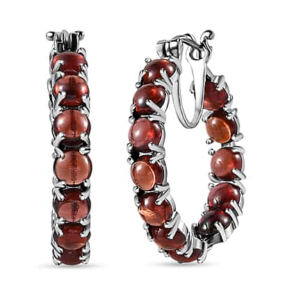 Red Garnet Hoop Earrings in Platinum Overlay Sterling Silver 26.60 Ct.