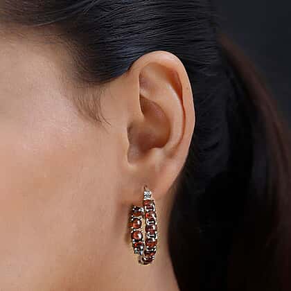 Imagine a fiery sunset captured in a circle of sky, these hoop earrings with red garnets set in platinum overlay sterling silver are just that. These Red Garnet Hoop Earrings in Platinum Overlay Sterling Silver represent the passion of a sunset and the coolness of the evening sky, a blend of warmth and tranquility.