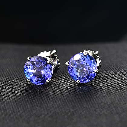 RHAPSODY 950 Platinum AAAA Tanzanite Solitaire Earring with Screw Back 2.70 Ct,