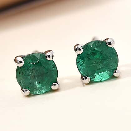 - GEMSTONE DETAILS: Two round faceted cut Kagem Zambian Emerald has ben studded onto these earrings through prongs