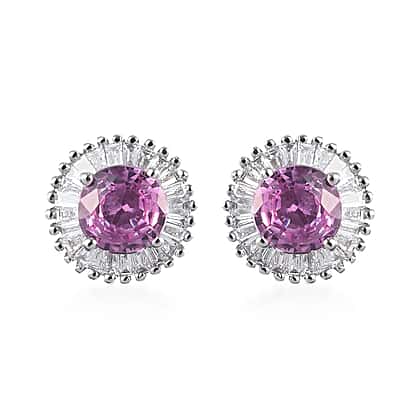RHAPSODY 950 Platinum AAAA Madagascar Pink Sapphire and Diamond (VS-E-F) Stud Earrings (with Screw Back) 1.40 Ct.