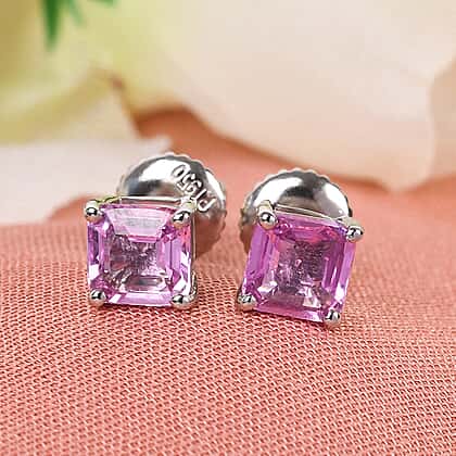 RHAPSODY 950 Platinum AAAA Pink Sapphire Stud Earrings (with Screw Back) 1.50 Ct.