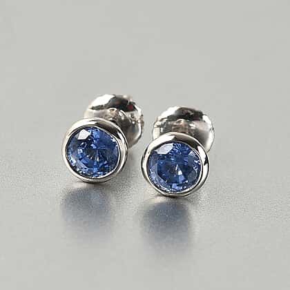 RHAPSODY AAAA Royal Ceylon Sapphire Stud Earrings in 950 Platinum