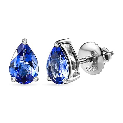 RHAPSODY 950 Platinum AAAA Tanzanite (Pear 7x5 mm) Stud Earrings (with Screw Back) 1.40 Ct.