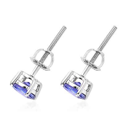 RHAPSODY 1 Carat AAAA Tanzanite Solitaire Stud Earrings in 950 Platinum 1.70 grams with Screw Back