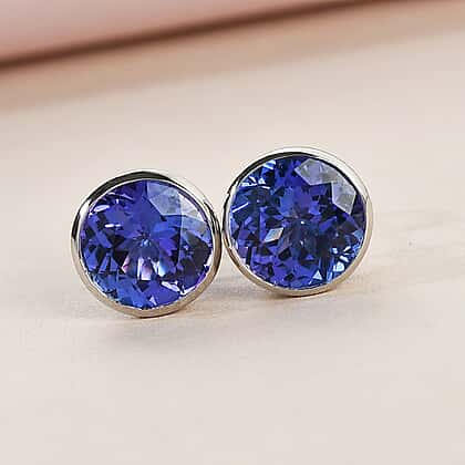RHAPSODY 950 Platinum AAAA Tanzanite Solitaire Stud Earrings 5.25 Carat
