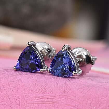 - The pair is decked with trillion cut Tanzanite, a deep midnight blue stone