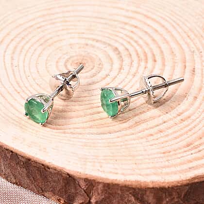 RHAPSODY 950 Platinum AAAA Zambian Emerald (Rnd) Earrings (with Screw Back) 1.00 Ct.