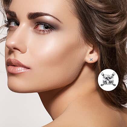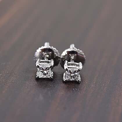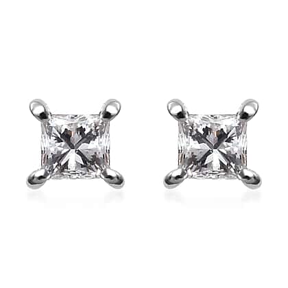 RHAPSODY 0.24 Ct Diamond Princess Cut Solitaire Stud Earrings in 950 Platinum SGL Certified VS EF