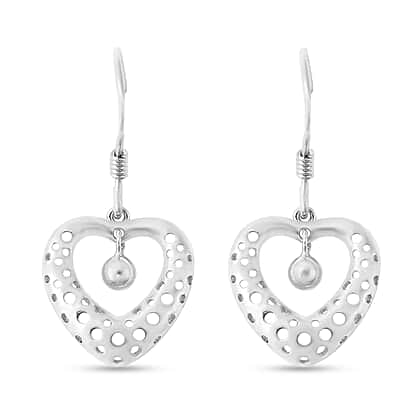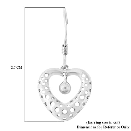 Heart Design with Lattice Pattern Drop Dangle Earrings In Rhodium Plated Sterling Silver