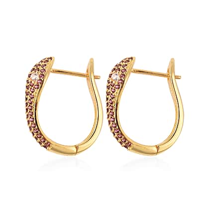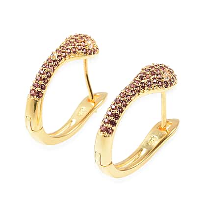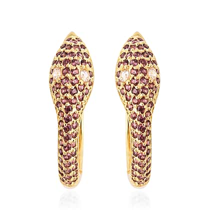 1.26 Ct Rhodolite Garnet Snake Hoop Earrings in Gold Plated Silver 6.30 Grams