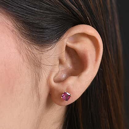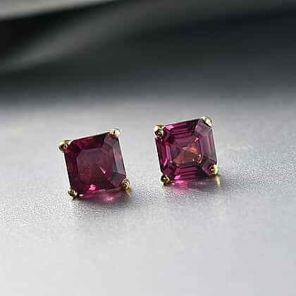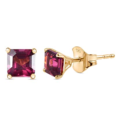 Rhodolite Garnet Solitaire Lever Back Earring in Yellow Gold Plated Sterling Silver 1.70 Ct.
