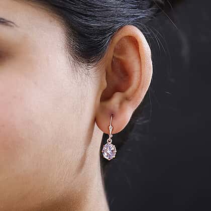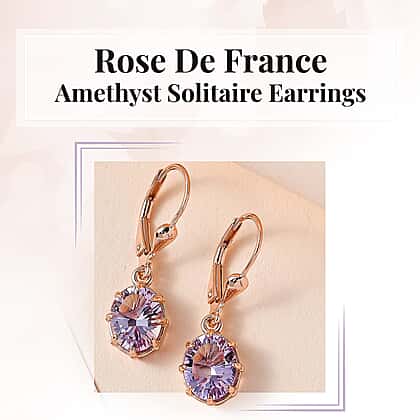 Rose De France Amethyst Solitaire Earrings with Lever Back in 18K Vermeil Rose Gold Plated Sterling Silver 3.41 Ct.