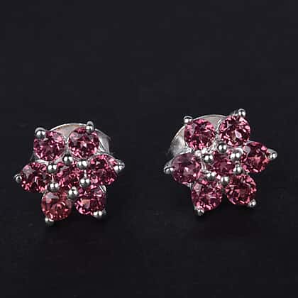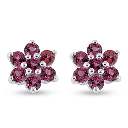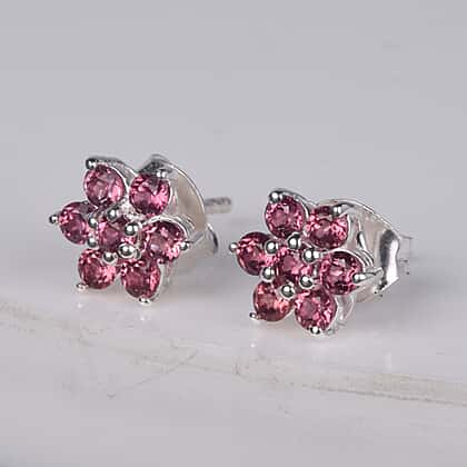 1 Ct. Rose Garnet Glodia Floral Stud Earrings in Sterling Silver