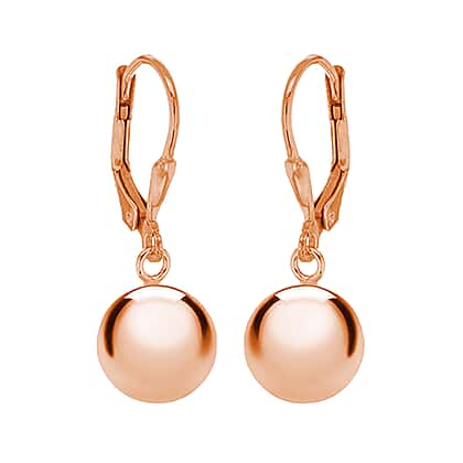 Rose Gold Overlay Sterling Silver Ball Drop Lever Back Earrings