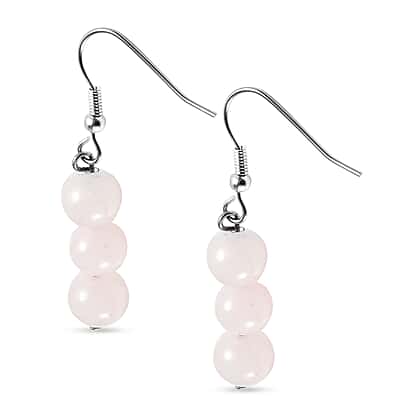 7-9 mm Rose Quartz Dangle Earrings in Silver Tone