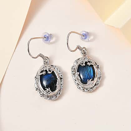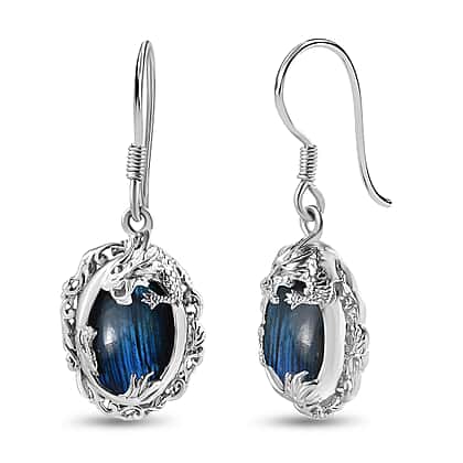 Labradorite Solitaire Dragon Earrings in Platinum Overlay Sterling Silver 14.00 Ct, Silver Wt 6.80 GM