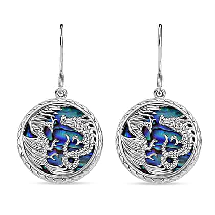 Royal Bali Collection - Abalone Shell Dragon Earrings in Sterling Silver 17.20 Ct, Silver Wt. 12.39 Gms