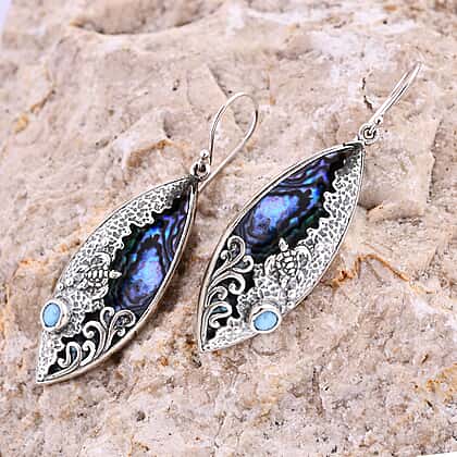 Royal Bali Collection - Abalone Shell,Larimar Hook Earring Sterling Silver 9.72 ct