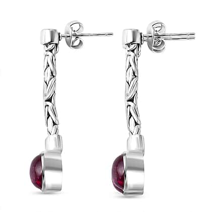 Royal Bali Collection - African Ruby Dangle Push Back Earring in Sterling Silver 6.55 Ct, Silver Wt. 5.73 Gms.