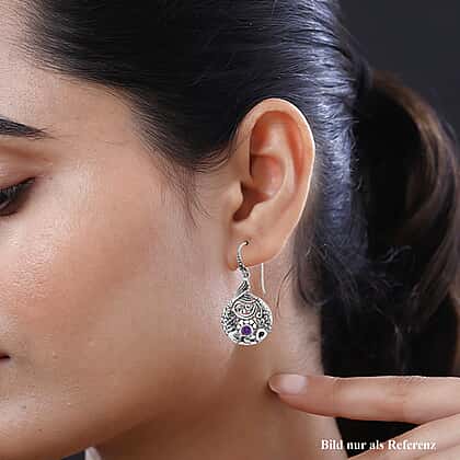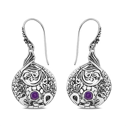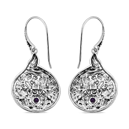 Royal Bali Collection - Amethyst Earrings (with Hook) in Sterling Silver, Silver Wt. 7 Gms