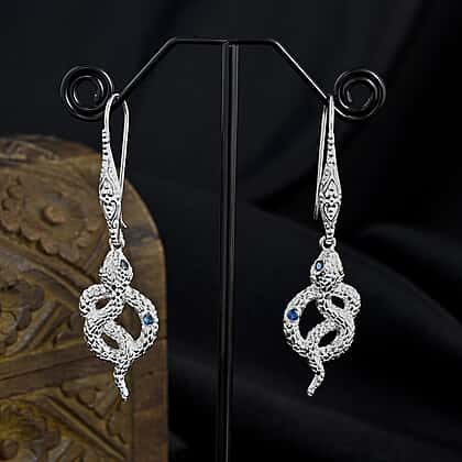 Royal Bali Collection - D'Joy Blue Sapphire & Black Spinel Sterling Silver Earring with Hook