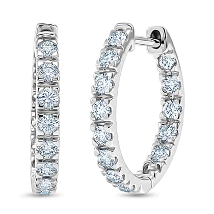 Opt for refined radiance with these moissanite hoop earrings. These beauties showcase a clean line of round moissanite stones that give bright, consistent sparkle. Moissanite is cherished for its diamond‑like fire, impressive clarity and robust durability, making these hoops a durable favourite. Made of platinum overlay sterling silver, these earrings are hypoallergenic, tarnish‑resistant and comfortable for sensitive ears, while the hinge fastening keeps them secure without fuss. Their balanced size works beautifully for workdays or evenings out. The slim, polished profile helps you make the perfect choice.