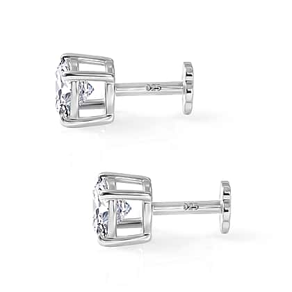 Royal Bali Collection - Moissanite Solitaire Stud Earring with Screw Back in Platinum Overlay Sterling Silver 1.54 Ct.