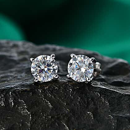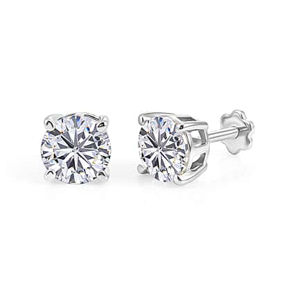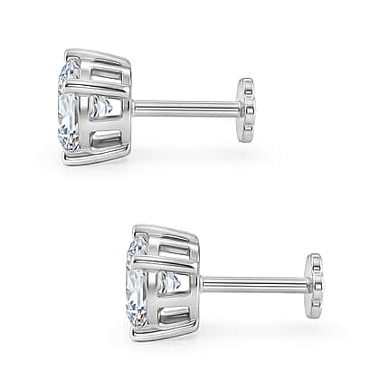 Royal Bali Collection - Moissanite Solitaire Stud Earring with Screw Back in Platinum Overlay Sterling Silver 2.40 Ct.