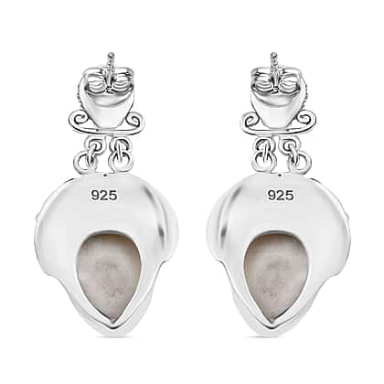 Royal Bali Collection - Ox Bone, Red Garnet & Sleeping Beauty Turquoise Earring with Push Back in Sterling Silver 14.59 Ct, Silver Wt. 18.00 Gms.
