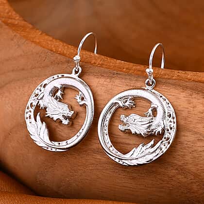 Royal Bali Collection - Sterling Silver Dragon Earrings, Silver Wt. 6.30 Gms