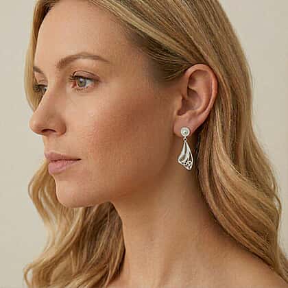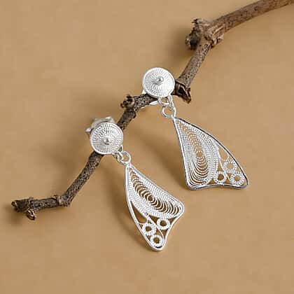 Bring fluid movement to your look with these sterling silver drop earrings, designed in a softly sculpted, wave-like design. The elongated form flows gracefully from the stud top, creating a sense of lightness and natural motion with every turn. Intricate filigree-style detailing spreads across the surface, adding texture and depth while allowing light to pass through delicately. Crafted in 925 sterling silver, these earrings offer lasting shine and durability. This flowing design often reflects freedom, change, and effortless grace, giving the earrings both visual beauty and symbolic meaning.