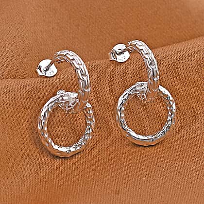 Royal Bali Collection - Sterling Silver Hammered Texture Earrings with Push Back, Silver Wt. 6.20 Gms.