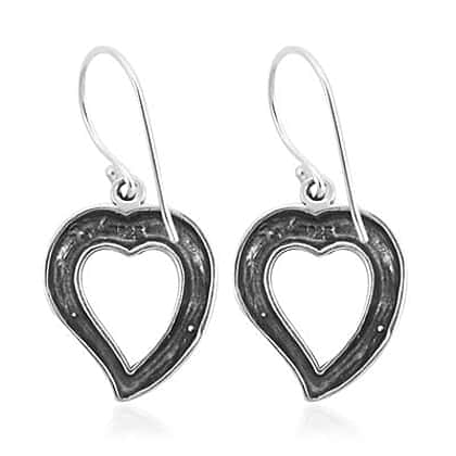 - The pair is crafted from Sterling Silver, featuring hollow heart shapes
