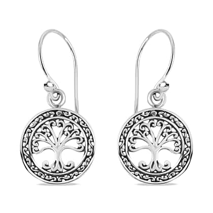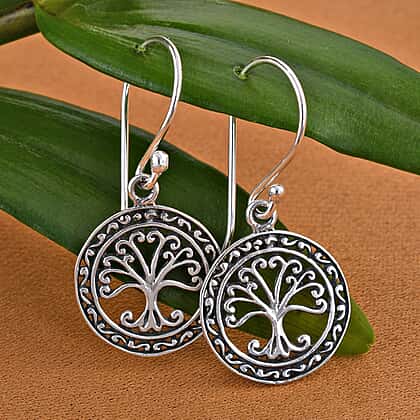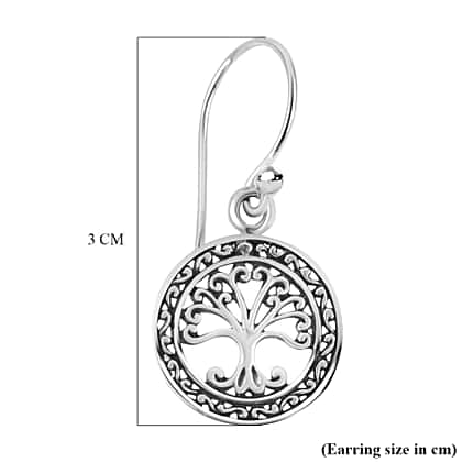 Royal Bali Collection - Sterling Silver Tree of Life Earrings (with Hook)