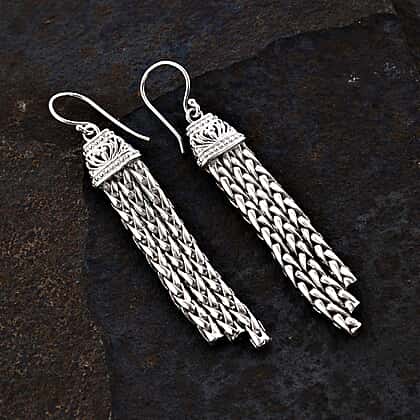 The Sterling Silver earrings from the Royal Bali Collection showcase a masterful blend of craftsmanship and imagination. The beauty of these earrings is enhanced by charming Spiga tassels. Inspired by the intricate wheat pattern, they pay homage to the rich heritage of Balinese artistry. Crafted in sterling silver, their delicate detailing mirrors the complexity of nature's beauty. These earrings transcend mere adornments and elevate your style with the playful charm of Spiga tassels.